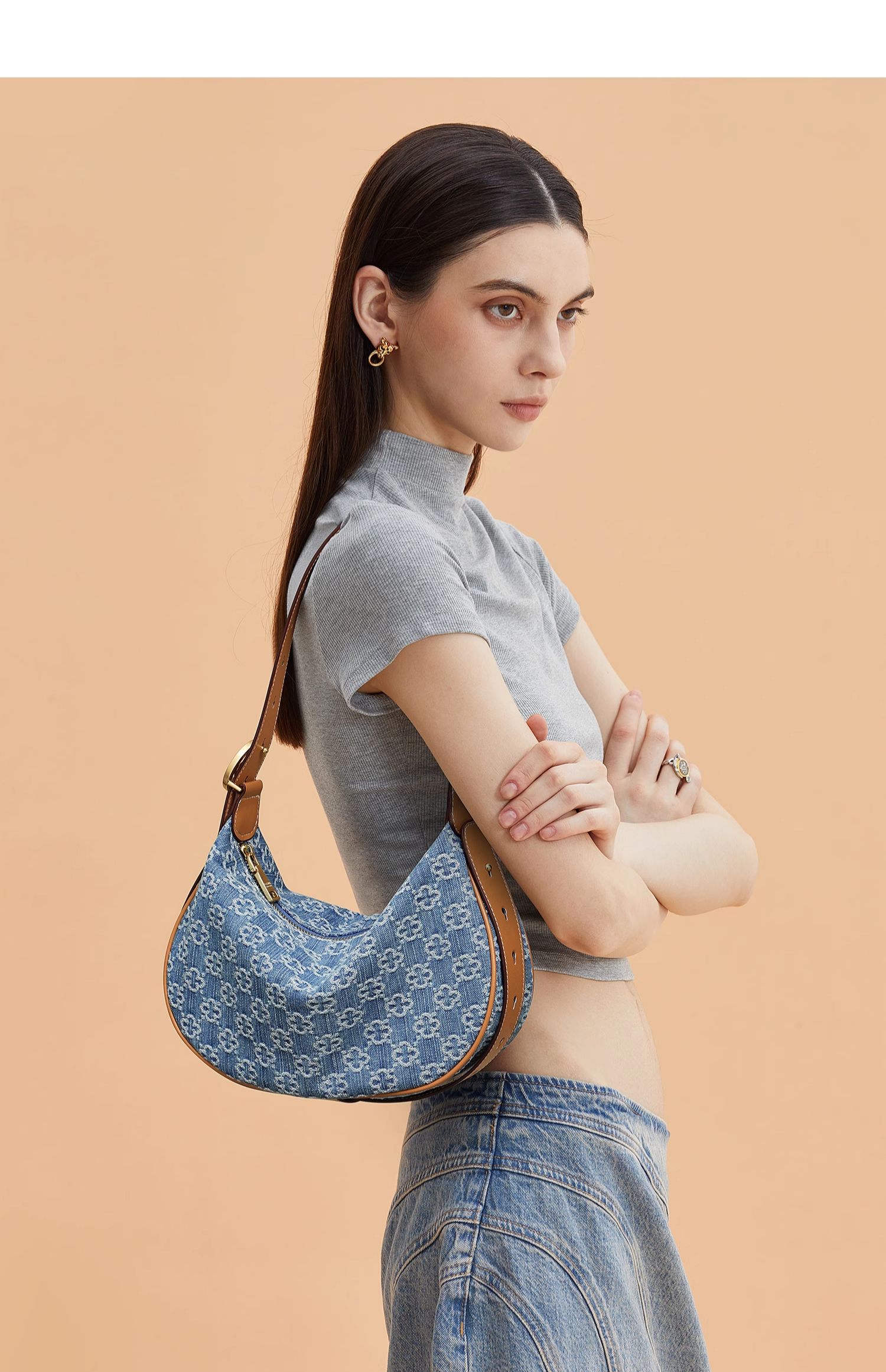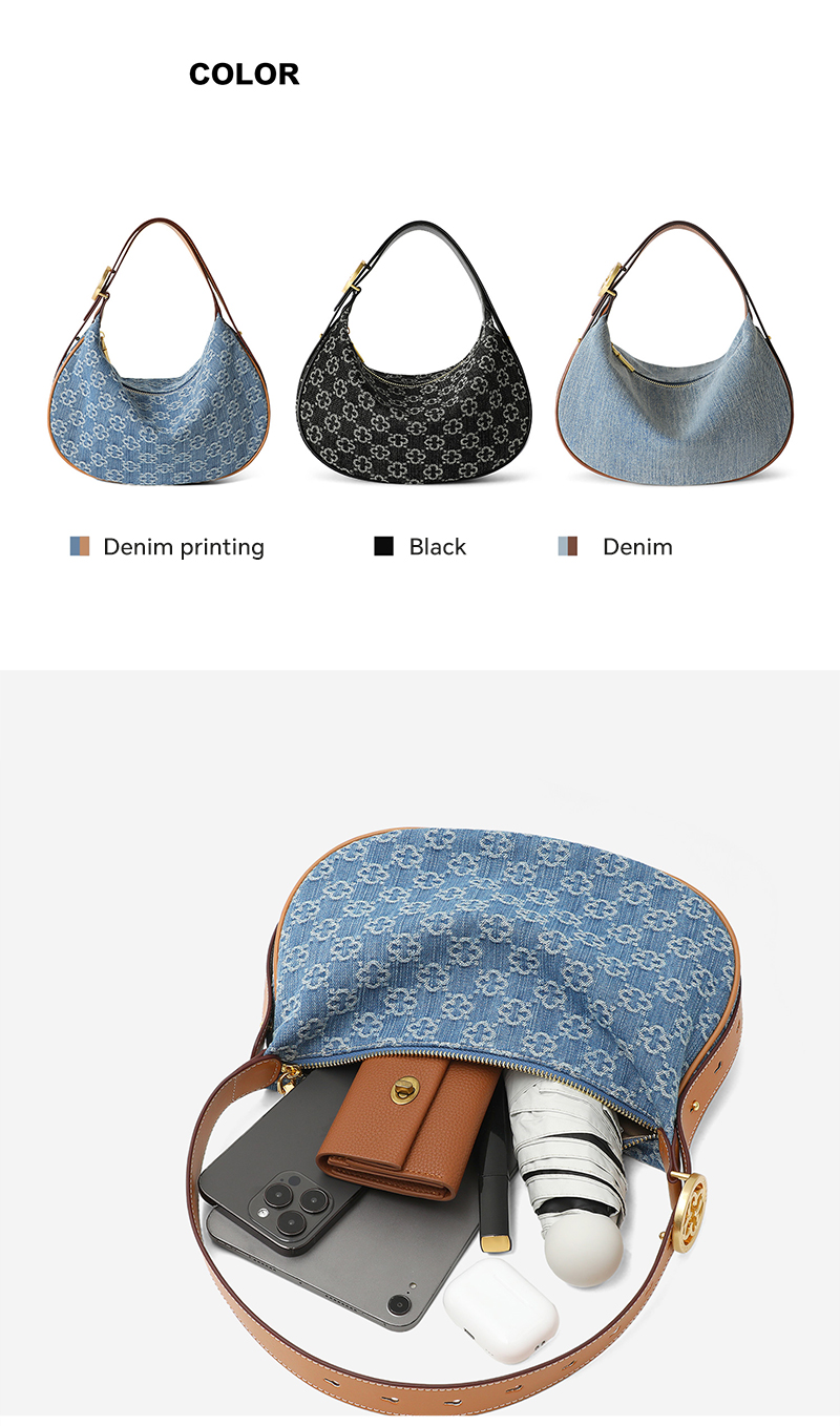 Cowboy Underarm Bag for Women Hobo Handheld Crescent Tooth Bag Shoulder Bag